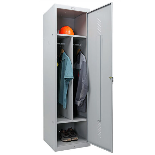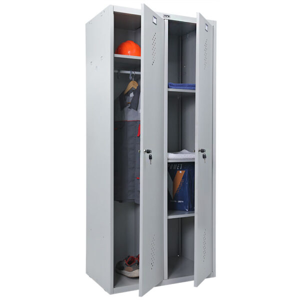 Metallist riidekapid Practice on kvaliteettooted. Tehase valikus on metallist riidekappe väga erineva värvuse ja varustustasemega. Laokaubana pakutavate metallkappide korpuse värvus on helehall RAL 7038, uste värvus helehall RAL 7038. Kapi kõrgus koos pingiga 2160 mm. Meie kappide standardvarustus on väga rikkalik ning kuulub hinnakirja hinna sisse.