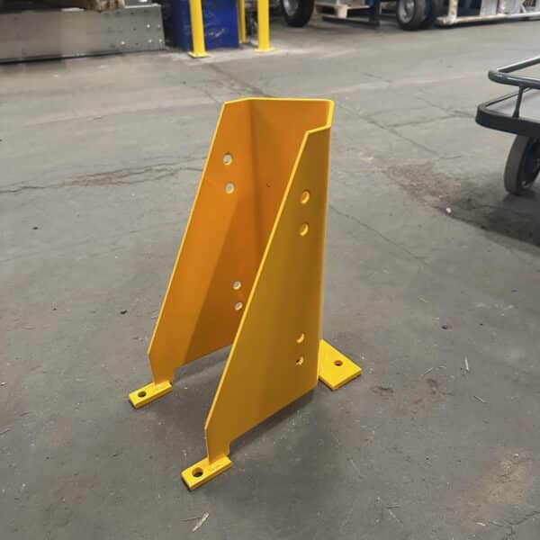 Mõõtmed: Kõrgusega 400 mm, 5 mm materjal. Lisainfo: - Pulbervärvitud kollane. - Mõeldud 90-120 mm laiale aluseriiuli postile. - Kinnitub põrandasse 4 kiilankru/betoonikruviga.