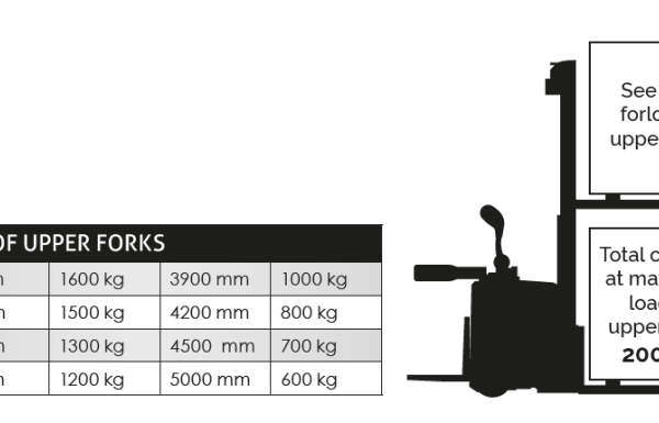- Tõstekõrgus 1550 mm, tõstekiirus koormaga 125 mm/s.