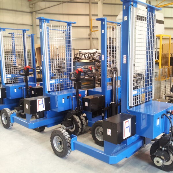 Semi-electric stacker suited for intensive handling and continuous lifting. Compact design ensures a small turning radius. Fast lifting/lowering speeds.